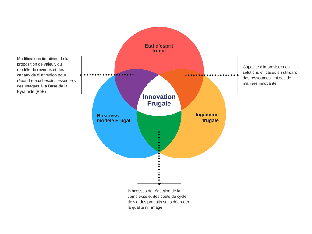 L’innovation frugale repose sur une idée simple : redéfinir les fonctionnalités des produits et services pour servir des consommateurs qui font face à des problèmes d’accessibilité extrême, de manière évolutive et durable. Il s’agit de surmonter le vide institutionnel (notamment dans les pays pauvres) et les contraintes de ressources pour offrir des produits accessibles au plus grand nombre, notamment au plus démunis.